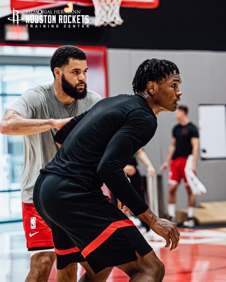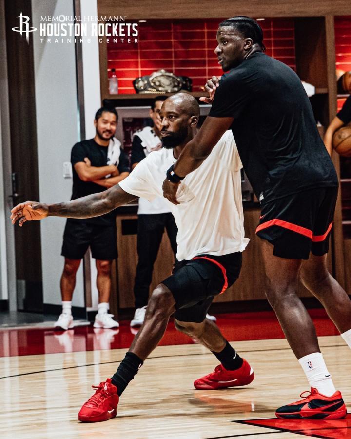 挥汗如雨!火箭队晒训练照:4位老将亮相,阿门缠斗范乔丹,谢泼德眼神专注